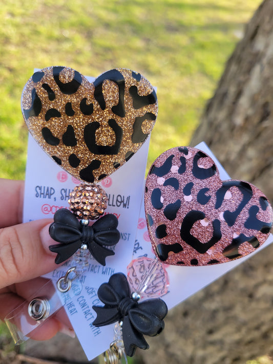 Heart Shaped Cheetah Print Badge Reel